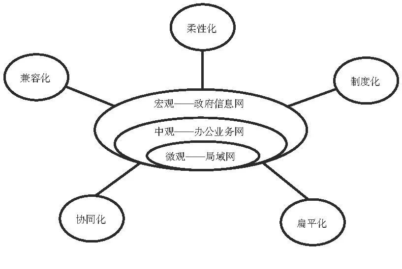 第一個(gè)層次是微觀層次, 是指設(shè)立政府局域網(wǎng), 就是在把各單位非涉密類文件進(jìn)行電子化處理, 集中發(fā)布在內(nèi)網(wǎng)上;第二個(gè)層次是中觀層次, 是指設(shè)置辦公業(yè)務(wù)網(wǎng), 主要涉及的是平行單位相關(guān)業(yè)務(wù)的數(shù)據(jù), 對(duì)這些數(shù)據(jù)進(jìn)行互通連接, 統(tǒng)一進(jìn)行管理;第三個(gè)層次是宏觀層次, 是指設(shè)立政府信息網(wǎng), 這主要是對(duì)政府部門實(shí)行一體化的管理, 增強(qiáng)數(shù)據(jù)的互聯(lián)互通, 切實(shí)形成構(gòu)建全國統(tǒng)一的數(shù)據(jù)開放模式的整體合力。