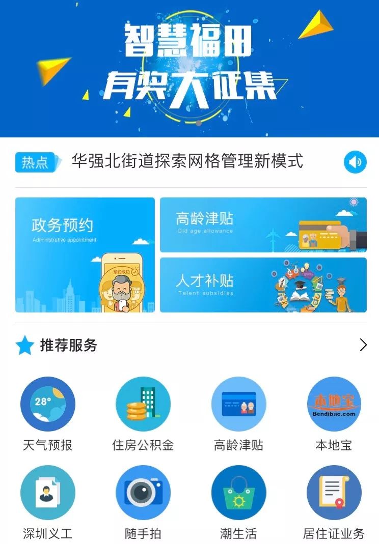 從最便捷的通道享受教育、醫(yī)療、文體等民生服務(wù),了解衣食住行等生活最新資訊,讀取最新的福田本地?zé)狳c(diǎn)新聞,真正實(shí)現(xiàn)了智慧城區(qū)便捷生活。