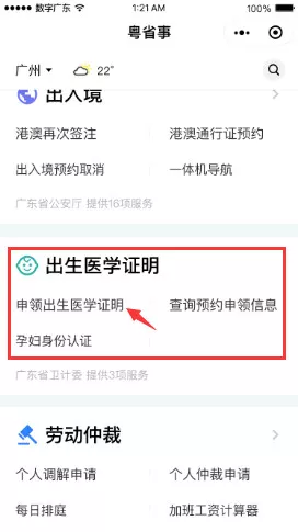 在主頁找到“出生醫(yī)學證明”欄目