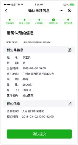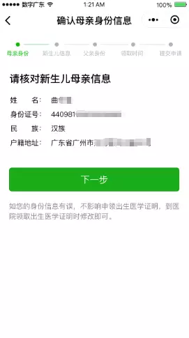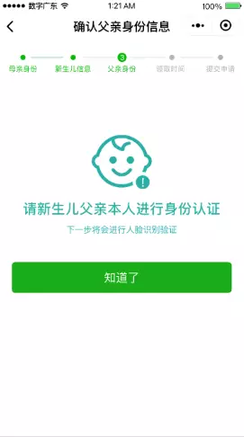 完成人臉身份驗證,確認新生兒母親信息