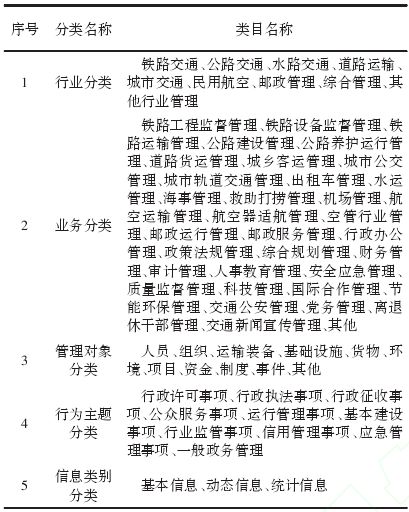 表3 交通運(yùn)輸政務(wù)信息資源分類(lèi)類(lèi)目