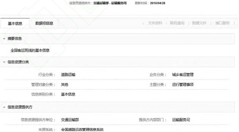 以班線線路信息為例,形成的信息資源目錄如表5所示,在目錄系統(tǒng)中查詢結(jié)果如圖5所示。