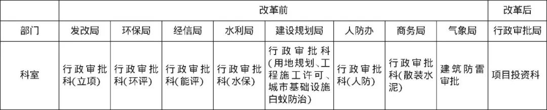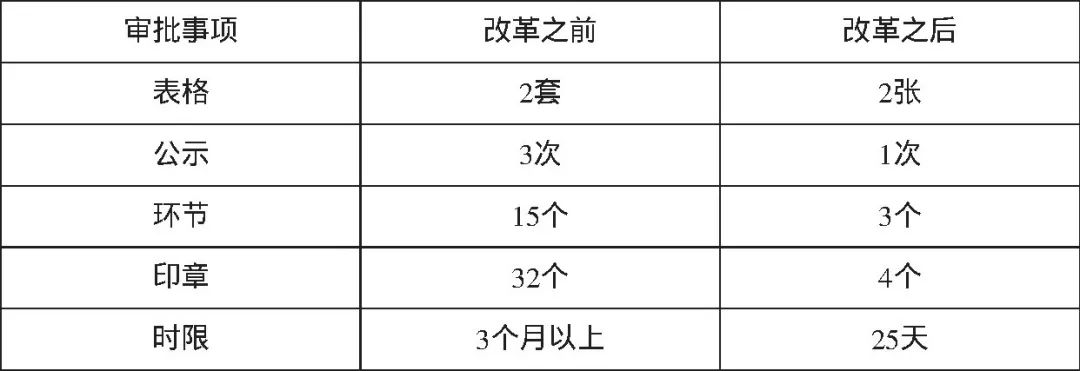 表1 改革前后審批部門數(shù)量對比