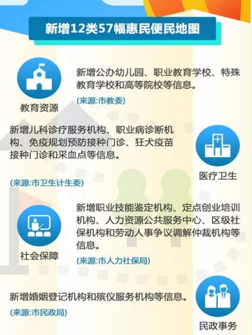 該負(fù)責(zé)人介紹,在現(xiàn)有的地圖基礎(chǔ)上,今年的地圖內(nèi)容圍繞疏解整治促提升、城市精細(xì)化管理、優(yōu)化營商環(huán)境等全市中心工作,系統(tǒng)覆蓋教育、醫(yī)療、民政、社保、交通、企業(yè)稅務(wù)、工商注冊、便民商業(yè)、不動產(chǎn)登記、公共文化服務(wù)、公共法律服務(wù)、政務(wù)服務(wù)等重點(diǎn)民生領(lǐng)域,地圖不僅涉及的行業(yè)進(jìn)一步增加,點(diǎn)位信息也進(jìn)一步擴(kuò)展,查詢內(nèi)容進(jìn)一步豐富,更加全面反映政府在促進(jìn)首都高質(zhì)量發(fā)展、加強(qiáng)公共服務(wù)、保障改善民生方面的工作進(jìn)展和成效。