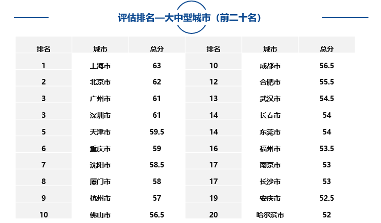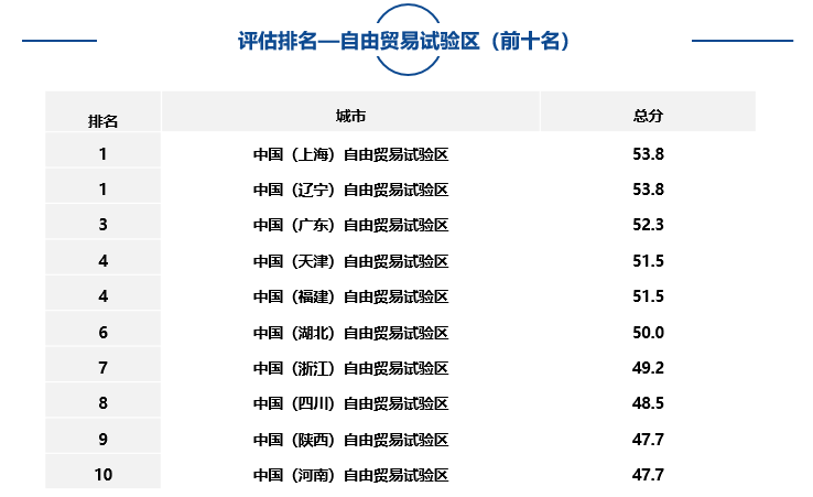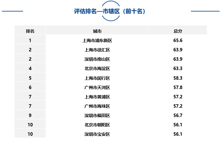 大中型城市、市轄區(qū)、自由貿(mào)易試驗(yàn)區(qū)中排名靠前名單如下: