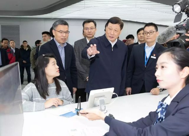2018年12月27日,上海市委副書記、市長應(yīng)勇在徐匯區(qū)行政服務(wù)中心,現(xiàn)場察看“一網(wǎng)通辦”推進(jìn)情況。