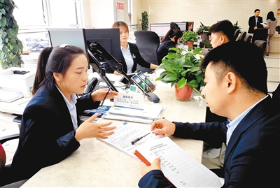 4月17日,效能監(jiān)督員(右)對(duì)政務(wù)服務(wù)大廳窗口工作人員現(xiàn)場(chǎng)打分。