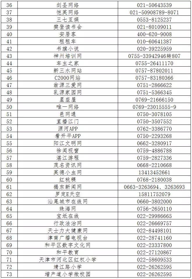此次公布舉報(bào)受理方式的網(wǎng)站,既包括地方政府政務(wù)網(wǎng)站、地方新聞門戶網(wǎng)站、商業(yè)網(wǎng)站,又包括社區(qū)、論壇、微信公眾號(hào)等互動(dòng)平臺(tái),以及直播、游戲、APP應(yīng)用程序等互聯(lián)網(wǎng)應(yīng)用平臺(tái),內(nèi)容涉及生活服務(wù)、房屋租賃買賣、網(wǎng)約車、求職招聘、教育培訓(xùn)、旅游出行、小說文學(xué)、醫(yī)療服務(wù)等多個(gè)方面。其中,滴滴出行、首汽約車、去哪兒、途牛旅游等網(wǎng)民使用率較高的出行、旅游類應(yīng)用平臺(tái),鏈家地產(chǎn)、我愛我家等房屋交易類應(yīng)用平臺(tái),盒馬鮮生、餓了么等生活服務(wù)類應(yīng)用平臺(tái)在公布名單之列。