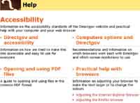 尤其在便利技術(shù)子主題中,網(wǎng)站設(shè)置了3個服務(wù)項(xiàng)目,特別為殘疾人士提供了極富人性化的服務(wù)幫助:更簡便的使用電腦、便利的技術(shù)產(chǎn)品、英國在線中心。這些服務(wù)項(xiàng)目主要幫助殘疾人士選擇合適的硬件器材、軟件平臺。其中英國在線中心,不僅提供了大量的便利性技術(shù)產(chǎn)品,如為盲人提供上網(wǎng)的語音輔助器材,為身體殘疾人士提供特殊的鼠標(biāo)鍵盤,同時通過最近的在線中心,用戶還可以獲得專門的服務(wù)人員的個人輔導(dǎo),順利地從政府網(wǎng)站獲取資訊和服務(wù)。