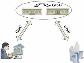 電子政務公共服務的基本模式可以依照服務對象的不同來劃分。一般認為,電子政務的服務對象包括三類,即公眾、企業(yè)和政府。因此,電子政務公共服務主要包括三種模式,即政府對公眾(GtoC)、政府對企業(yè)(GtoB)、政府對政府(GtoG)(詳見圖1)。