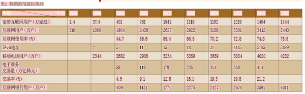為了能夠積極應(yīng)對(duì)快速變化的IT潮流,成功進(jìn)入知識(shí)信息社會(huì)和新經(jīng)濟(jì)時(shí)代,韓國(guó)始終在全力以赴地為實(shí)現(xiàn)信息化而奮斗。在過去的20年中,韓國(guó)的政府和私有部門都在為信息化做出自己的努力,如今韓國(guó)已經(jīng)建成世界上質(zhì)量最高的信息基礎(chǔ)設(shè)施,成為各國(guó)效仿的樣板。