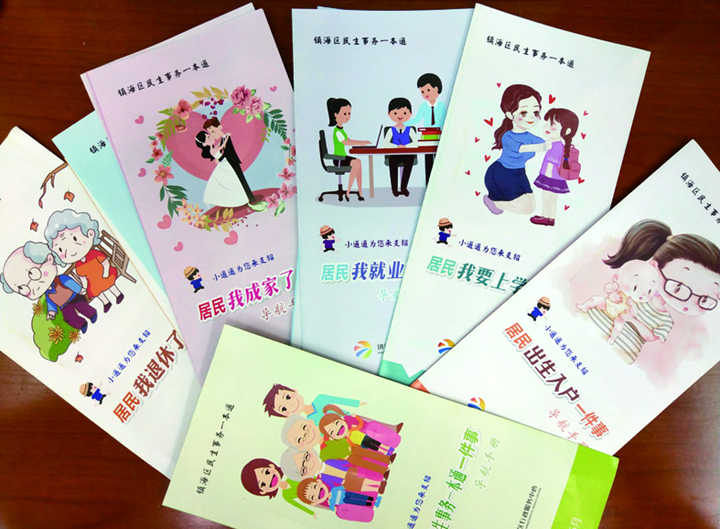 近期,在區(qū)行政服務中心大廳的置物架上,可以看到一套套卡通封面的小冊子。翻開小冊子,里面是跟每個人息息相關(guān)的,要和政府部門“親密接觸”的民生事項。同以往宣傳冊單方面的信息灌輸不同,這些小冊子的敘述角度從“你”變成了“我”,用講故事的模式,讓讀者在情境中接受和了解辦事流程。這就是區(qū)行政服務中心編制推出的《鎮(zhèn)海區(qū)民生事務一本通》。