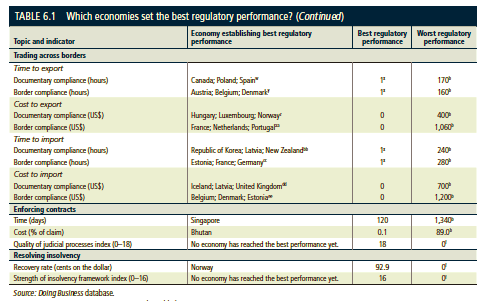 除了以上幾個突出的改革亮點,世界銀行認為,中國在以下方面的改革也值得肯定:將公司印章發(fā)放完全納入企業(yè)注冊登記一站式服務(wù);簡化對低風(fēng)險工程建設(shè)項目的施工許可證要求,縮短供排水接入時間;精簡辦理接電流程,提高電費透明度;通過要求控股股東對不公平關(guān)聯(lián)方交易承擔(dān)連帶責(zé)任,明晰所有權(quán)和控制結(jié)構(gòu),加強了對少數(shù)投資者的保護;對小企業(yè)實行企業(yè)所得稅優(yōu)惠政策,降低某些行業(yè)的增值稅稅率,加強電子化納稅申報和繳納系統(tǒng);通過實行進出口貨物提前申報、升級港口基礎(chǔ)設(shè)施、優(yōu)化海關(guān)行政管理和公布收費標準等措施,簡化進出口程序;通過規(guī)定可給予的合同延期次數(shù)上限和將延期限于不可預(yù)見和例外情況,提升執(zhí)行合同的便利度;通過規(guī)定破產(chǎn)程序啟動后的債權(quán)優(yōu)先規(guī)則和提升債權(quán)人在破產(chǎn)程序中的參與程度,提高辦理破產(chǎn)的便利度。