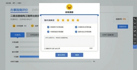 根據(jù)設(shè)計(jì),“好差評(píng)”的評(píng)價(jià)等級(jí)分為五個(gè),即分為非常滿意、滿意、基本滿意、不滿意、非常不滿意。評(píng)價(jià)采取實(shí)名制,辦事企業(yè)和群眾每辦理一次政務(wù)服務(wù)事項(xiàng),都可以在辦理完畢后評(píng)價(jià)一次。