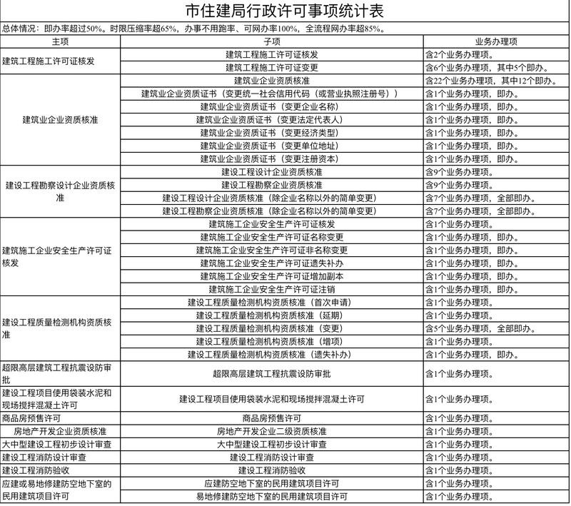 “時(shí)限壓縮率”指行政許可事項(xiàng)承諾時(shí)限對(duì)比法定時(shí)限的壓縮程度。目前,住建局時(shí)限壓縮率65%。