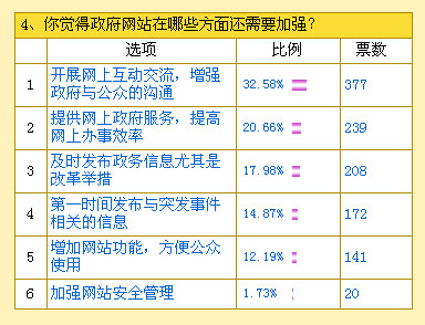 針對(duì)政府網(wǎng)站的調(diào)查,網(wǎng)友主要反映出四個(gè)方面的問題: