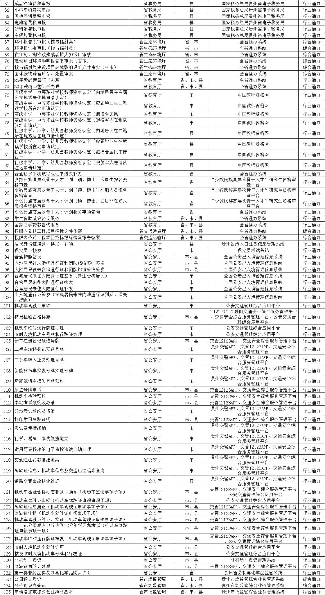 據(jù)貴州省政務(wù)服務(wù)中心消息,在現(xiàn)已公布的671項全省通辦事項中,135項已全面上線運行。其中,24項綜合通辦事項,涉及藥監(jiān)、司法、交通、新聞出版、市場監(jiān)管、生態(tài)環(huán)境等領(lǐng)域;111項行業(yè)通辦事項,涉及公安、稅務(wù)、教育等領(lǐng)域。