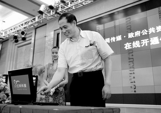 副省長郭開朗點(diǎn)擊開通鍵盤,紅網(wǎng)傳媒正式開通。圖/記者殷建軍