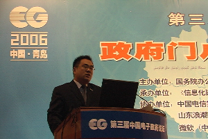 2006年9月16日—17日,由國(guó)務(wù)院辦公廳秘書局、國(guó)務(wù)院辦公廳電子政務(wù)中心主辦,青島市委市政府計(jì)算機(jī)中心、《信息化建設(shè)》雜志社等承辦的第三屆中國(guó)電子政務(wù)論壇在青島市舉行。受論壇邀請(qǐng),參與青島市網(wǎng)上審批系統(tǒng)建設(shè)的浪潮集團(tuán),攜其浪潮政務(wù)審批平臺(tái)(ECGAP)及政府行政審批信息化解決方案參加了這次論壇。在標(biāo)有“浪潮”企業(yè)標(biāo)識(shí)的主會(huì)場(chǎng)背景板前,浪潮集團(tuán)電子政務(wù)領(lǐng)域的技術(shù)專家張峰發(fā)表了題為《精鑄服務(wù)平臺(tái)貫通互聯(lián)政務(wù)》的演講,對(duì)浪潮先進(jìn)的政務(wù)信息化解決方案做了精彩論述,受到了與會(huì)300多名省、市級(jí)政府信息化建設(shè)主管領(lǐng)導(dǎo)的青睞與關(guān)注。