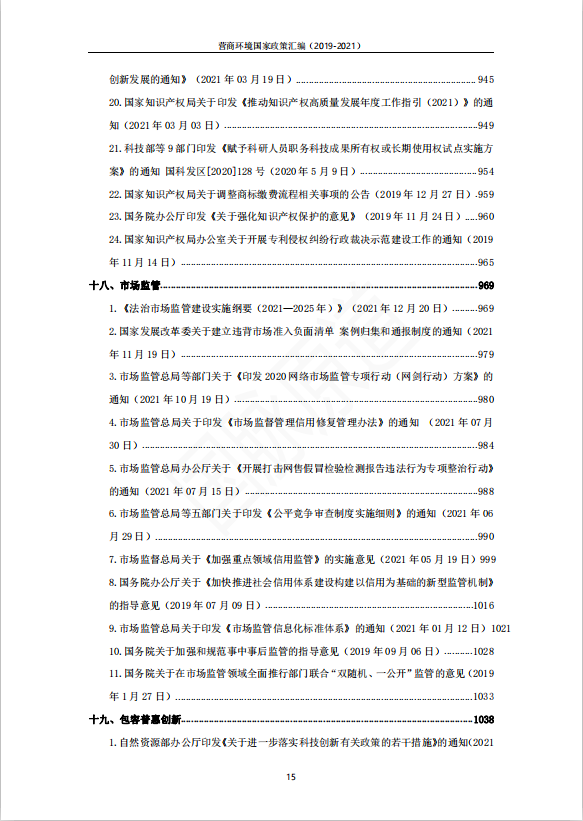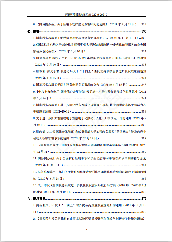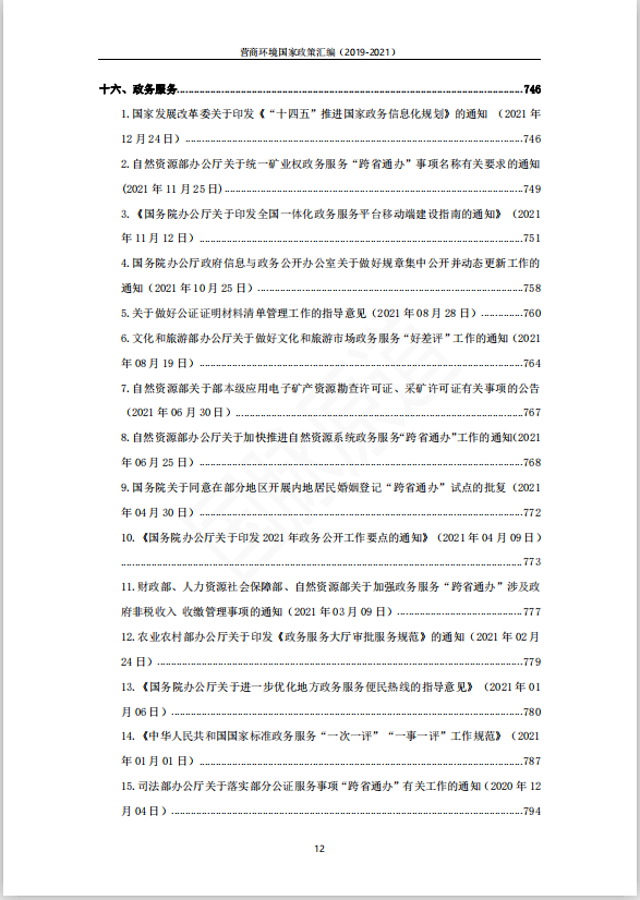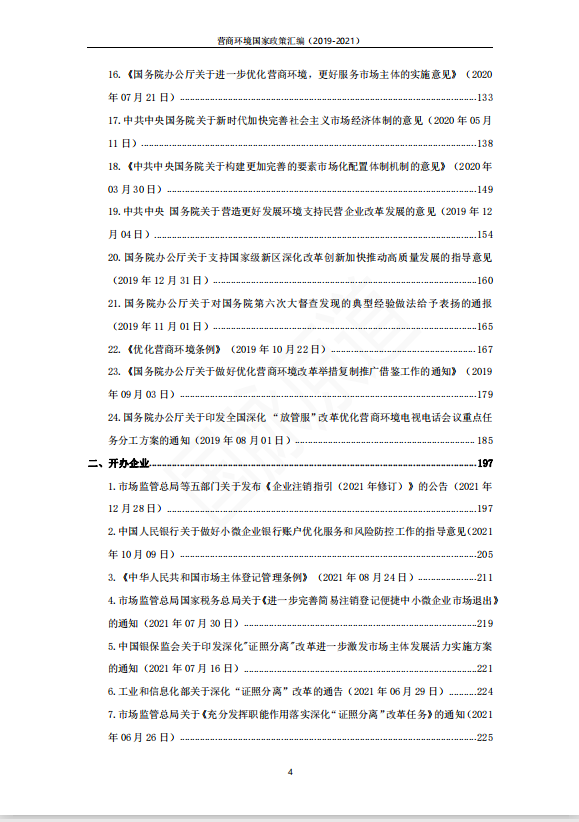 近年來,黨中央、國務(wù)院圍繞市場主體需求,以深化“放管服”為主要抓手,出臺了一系列政策文件,指引我國營商環(huán)境優(yōu)化工作的有序、有力開展。湖南國脈原道數(shù)據(jù)科技有限公司對國家層面2019年-2021年出臺的營商環(huán)境相關(guān)的政策文件、標(biāo)準(zhǔn)規(guī)范等進(jìn)行了匯編,按照國家發(fā)改委營商環(huán)境評價的18大指標(biāo)進(jìn)行了分類整理,共計200余個文件。該匯編將持續(xù)性更新,是各地各部門優(yōu)化營商環(huán)境工作開展的重要參考。