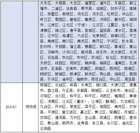其中,綜合指數(shù)在0.9(含)以上的為“卓越”,指數(shù)在0.8(含)至0.9之間的為“優(yōu)秀”,指數(shù)在0.7(含)至0.8之間的為“良好”,指數(shù)在0.6(含)至0.7之間的為“中等”,指數(shù)在0.6以下的為“待改進(jìn)”。