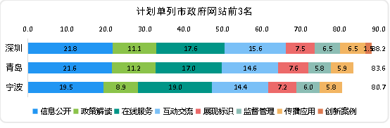 計(jì)劃單列市政府門(mén)戶網(wǎng)站中,深圳、青島和寧波位列前三名。得分如下: