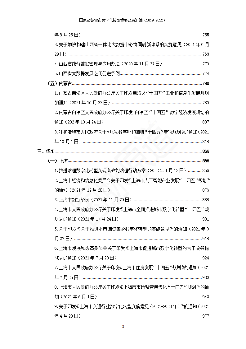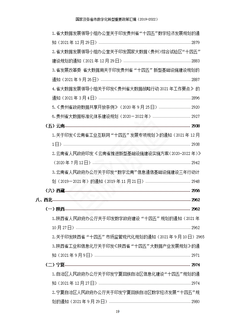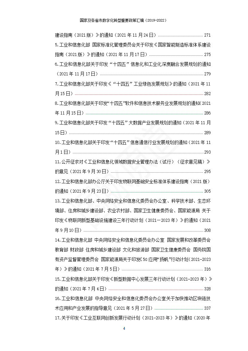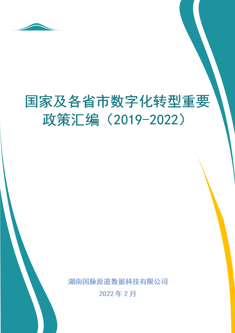 湖南國脈原道數(shù)據(jù)科技有限公司對國家層面、省級層面及部分市級層面2019年-2022年出臺的數(shù)字化轉(zhuǎn)型相關(guān)的政策文件進(jìn)行了匯編,共計(jì)200余個(gè)文件,3000余頁,近200萬字。該匯編將持續(xù)性更新,是各地各部門數(shù)字化工作開展的重要參考。
