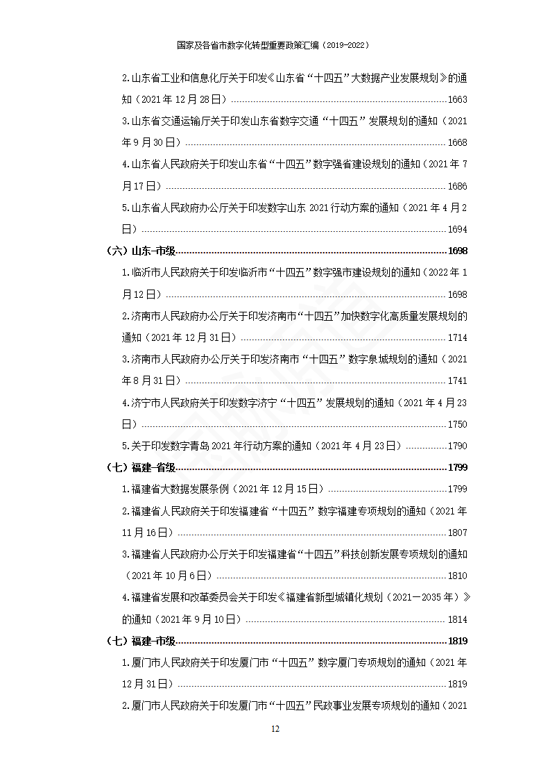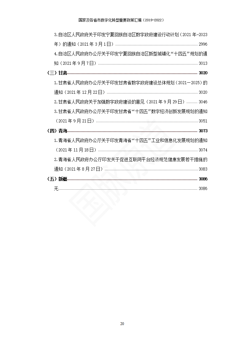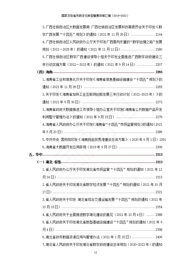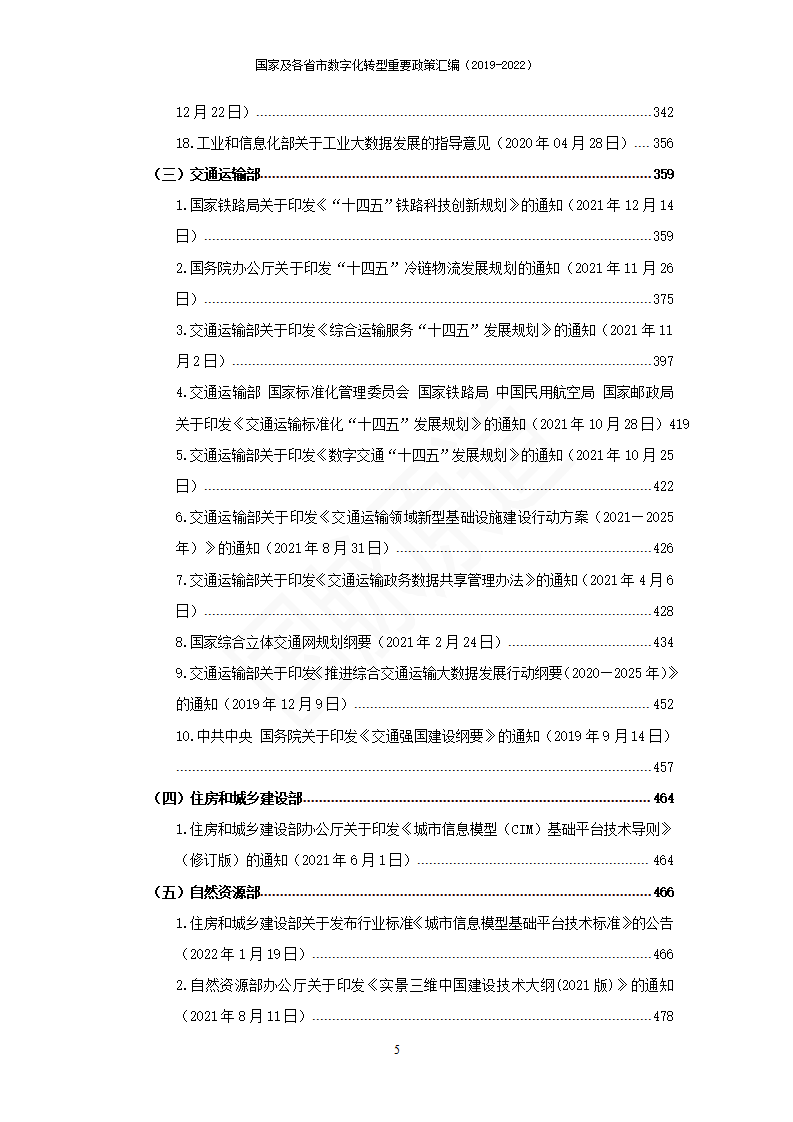 湖南國脈原道數(shù)據(jù)科技有限公司對國家層面、省級層面及部分市級層面2019年-2022年出臺的數(shù)字化轉(zhuǎn)型相關(guān)的政策文件進(jìn)行了匯編,共計(jì)200余個(gè)文件,3000余頁,近200萬字。該匯編將持續(xù)性更新,是各地各部門數(shù)字化工作開展的重要參考。