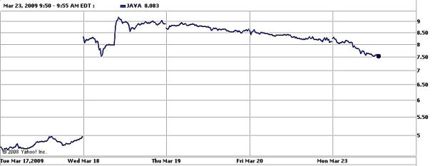 知情人士表示,IBM將按每股約10美元的價(jià)格收購(gòu)Sun,這一價(jià)格超過(guò)了Sun3月17日收盤價(jià)的兩倍。自上周交易消息刺激Sun股價(jià)暴漲79%后,目前該股價(jià)已經(jīng)下跌了約11%。該收購(gòu)將使IBM在全球服務(wù)器市場(chǎng)的份額擴(kuò)大至近一半,進(jìn)一步鞏固其在服務(wù)器市場(chǎng)的霸主地位。