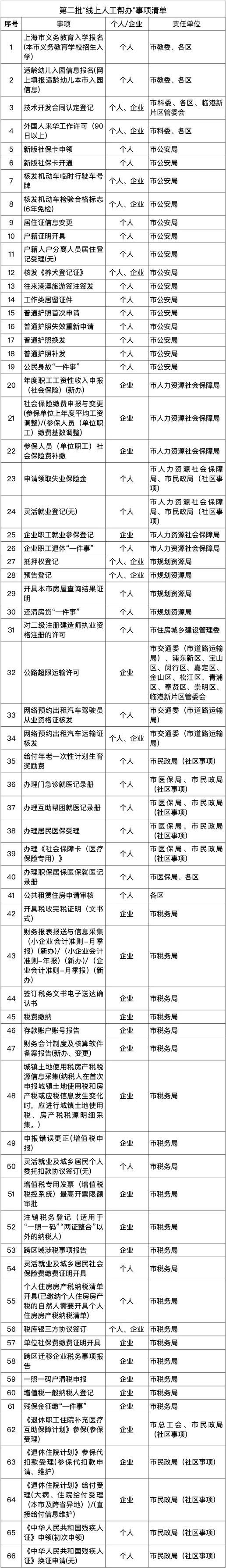 第二批“線上人工幫辦”事項清單