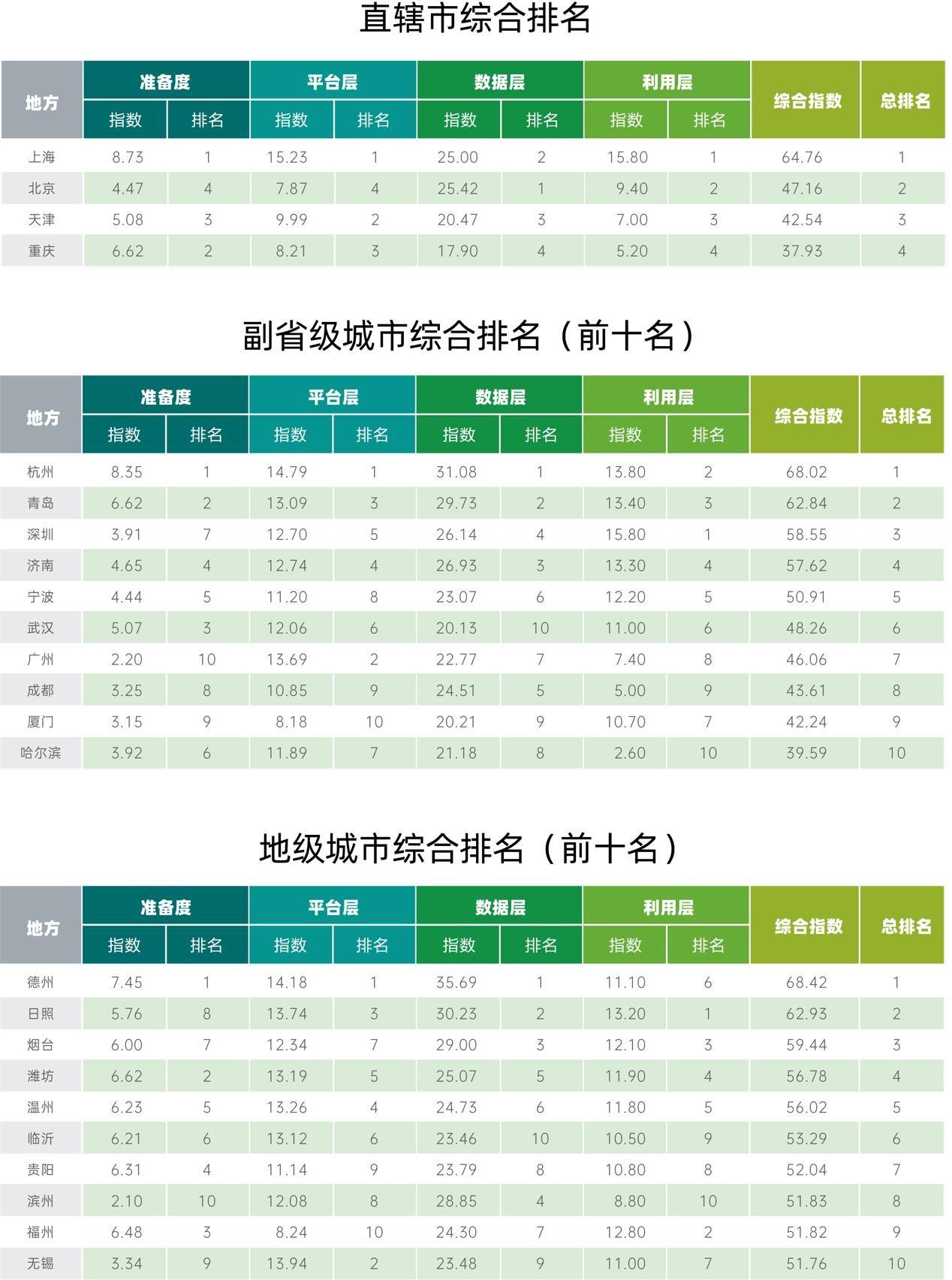 副省級開放數(shù)林指數(shù)排名前十的地方如下表所示,杭州市綜合表現(xiàn)最優(yōu),位列第一,青島市和深圳市也表現(xiàn)優(yōu)異。