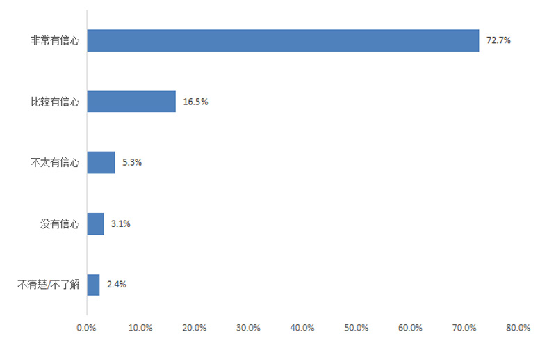 調(diào)查結(jié)果顯示,企業(yè)對在遼寧持續(xù)依法有序生產(chǎn)經(jīng)營的信心為89.2%(“非常有信心”和“比較有信心”比重加權(quán)之和),其中評價“非常有信心”的占72.7%,“比較有信心”的占16.5%,“不太有信心”的占5.3%,“沒有信心”的占3.1%,“不清楚/不了解”的占2.4%。