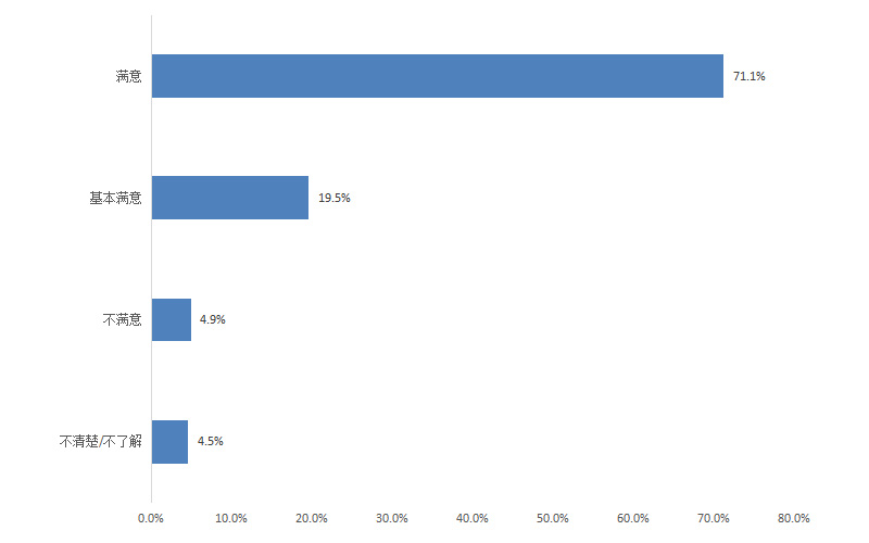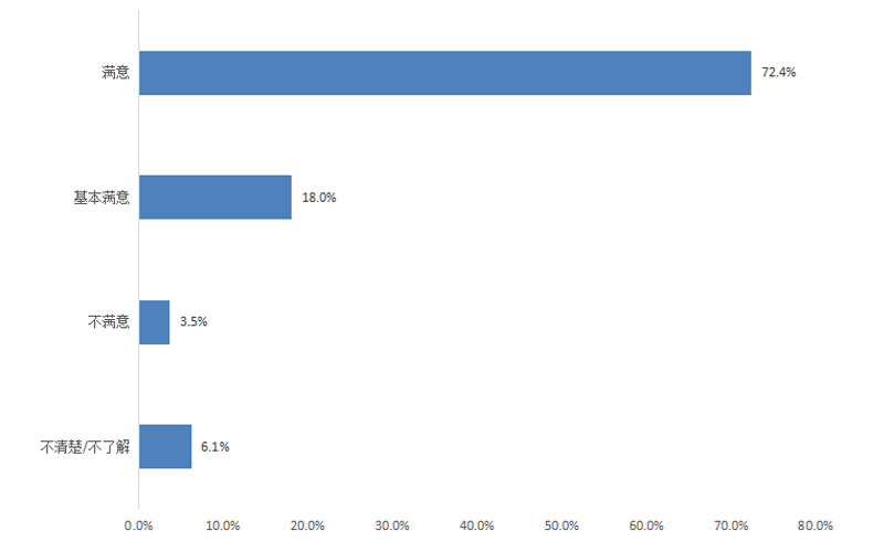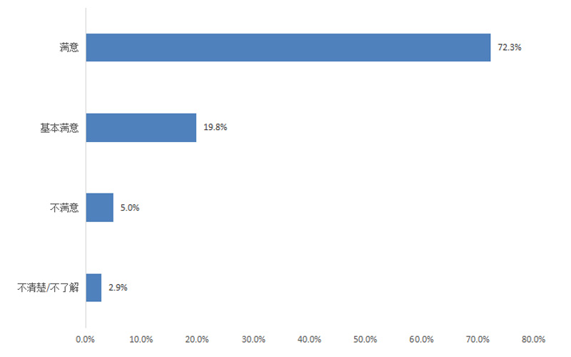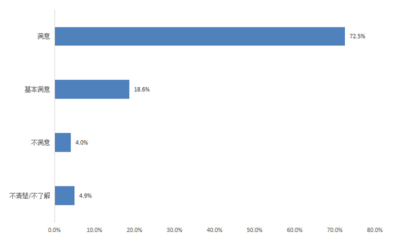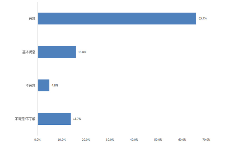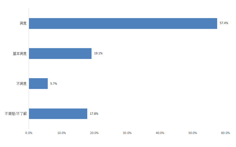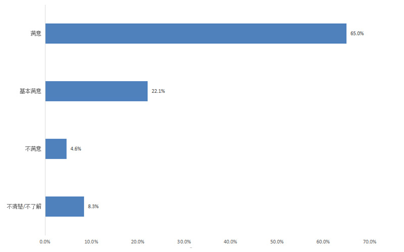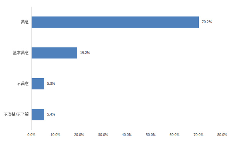 調(diào)查結(jié)果顯示,群眾對政府機(jī)關(guān)執(zhí)行“放管服”改革及“一站式辦理審批”的滿意度為90.0%,其中評價“滿意”的占65.1%,“基本滿意”的占24.9%,“不滿意”的占4.3%,“不清楚/不了解”的占5.7%。