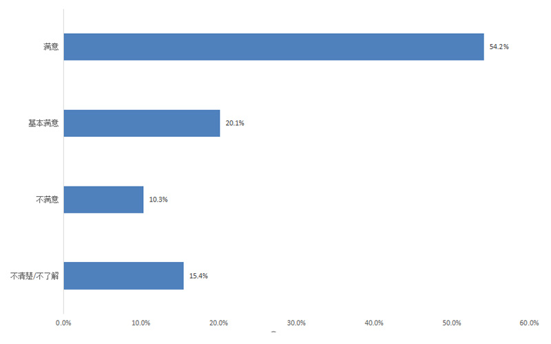 調(diào)查結(jié)果顯示,群眾對公平競爭的市場環(huán)境的滿意度為74.3%,其中評價“滿意”的占54.2%,“基本滿意”的占20.1%,“不滿意”的占10.3%,“不清楚/不了解”的占15.4%。