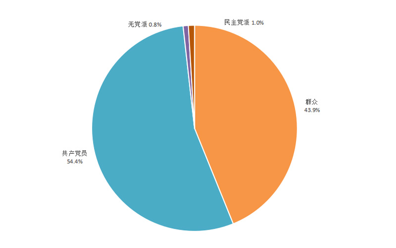 政治面貌構(gòu)成情況:中共黨員92183人,占54.4%;群眾74390人,占43.9%;民主黨派1625人,占1.0%;無黨派1392人,占0.8%。