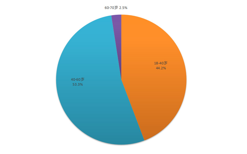 年齡構(gòu)成情況:18-40歲75014人,占44.2%;40-60歲90420人,占53.3%;60-70歲4156人,占2.5%。