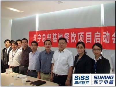 近日,“蘇寧電器總部餐飲管理系統(tǒng)啟動儀式”在南京山西路蘇寧銀河廣場正式舉行,出席此次啟動儀式的嘉賓有蘇寧電器常務(wù)副總監(jiān)王曉兵先生、項目總監(jiān)趙輝艷及思迅總部餐飲項目部總監(jiān)朱小剛、思迅南京分公司項目總監(jiān)葛春等。