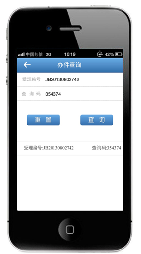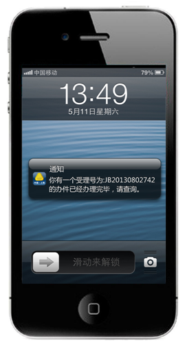 移動(dòng)終端系統(tǒng)可以綁定用戶手機(jī)的設(shè)備ID,并在手機(jī)上自動(dòng)記錄提交的辦件編號,供將來進(jìn)行辦件查詢。這將比電腦更加方便。