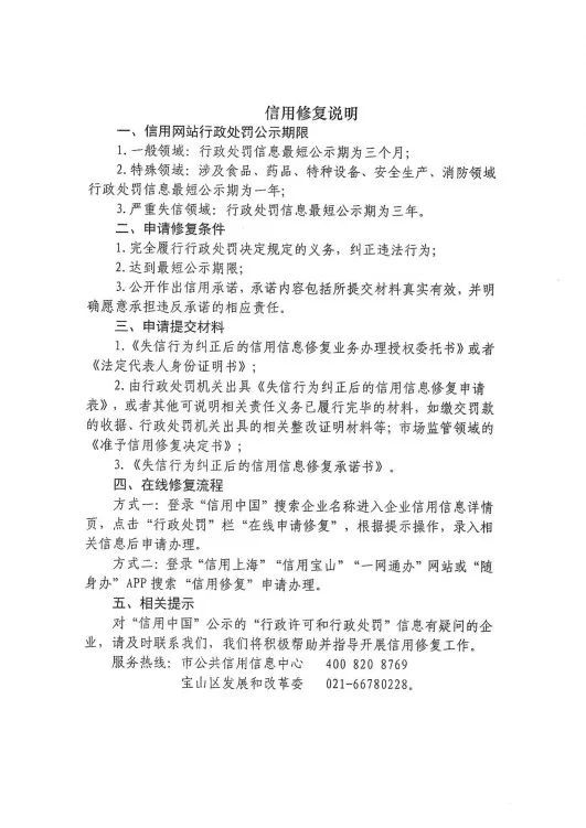 《信用修復告知書》按照“誰處罰、誰提醒、誰指導”原則,主動告知經(jīng)營主體行政處罰信息公示途徑、修復條件及流程等內(nèi)容,推動失信企業(yè)及時進行信用修復。