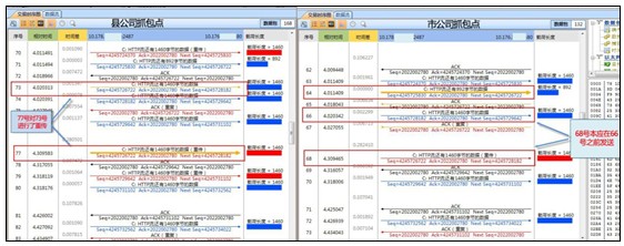 我們對(duì)兩次捕獲TCP會(huì)話(huà)進(jìn)行對(duì)比分析,如圖2: