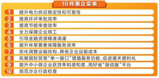 10件惠企實(shí)事是云南省大力優(yōu)化營商環(huán)境的重要抓手,也是持續(xù)打通要素保障難點(diǎn)、堵點(diǎn)的具體途徑。通過每年集中力量辦好一批關(guān)系企業(yè)切身利益的實(shí)事,通過解決“一件事”、做到破解“一類事”,以實(shí)實(shí)在在的工作成果讓經(jīng)營主體有感有得。