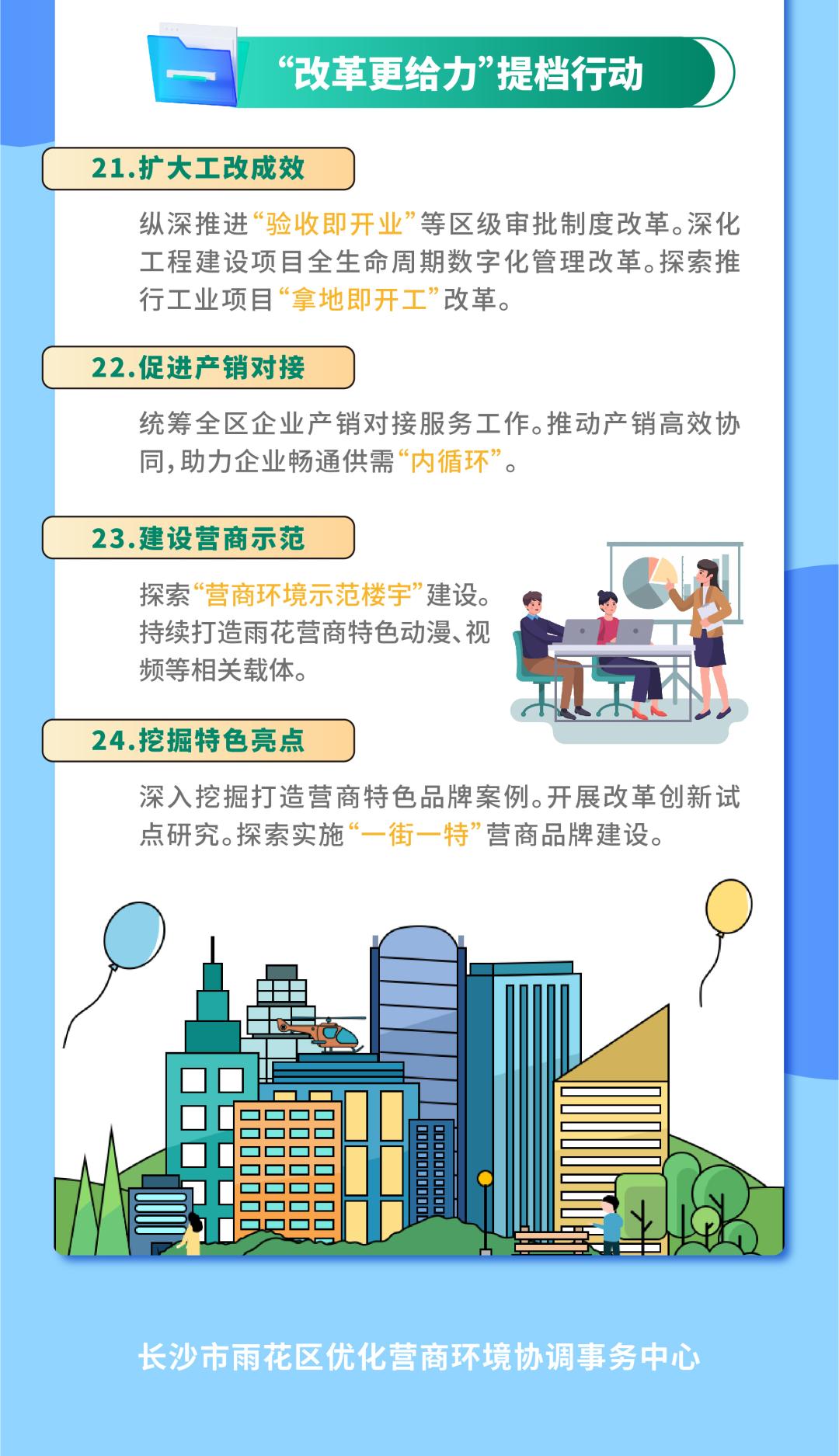 近年來(lái),雨花區(qū)始終將“為企業(yè)解難題、促發(fā)展”作為營(yíng)商環(huán)境優(yōu)化的初心使命,以“靶向破梗阻、服務(wù)零距離”的務(wù)實(shí)行動(dòng),持續(xù)擦亮“營(yíng)商沃土”金字招牌,讓政策紅利精準(zhǔn)滴灌、發(fā)展動(dòng)能澎湃釋放。圍繞企業(yè)需求和關(guān)切,近日,雨花區(qū)聚焦市場(chǎng)主體全生命周期需求,正式推出《環(huán)境優(yōu)化提檔攻堅(jiān)行動(dòng)方案》,方案圍繞“三化”一流營(yíng)商環(huán)境建設(shè),系統(tǒng)部署六大提檔行動(dòng)、24項(xiàng)改革攻堅(jiān)任務(wù),從“驗(yàn)收即開(kāi)業(yè)”審批革命到“四張清單”柔性監(jiān)管,從“股東式”服務(wù)政企聯(lián)動(dòng)到“信用+金融”生態(tài)構(gòu)建,每一項(xiàng)舉措均緊扣降成本、提效率、優(yōu)生態(tài)的核心訴求。通過(guò)專班化推進(jìn)、場(chǎng)景化落地,雨花區(qū)將以更高標(biāo)準(zhǔn)打造政務(wù)服務(wù)“極簡(jiǎn)版”、要素供給“加強(qiáng)版”、監(jiān)管執(zhí)法“溫情版”,持續(xù)擦亮“營(yíng)商環(huán)境看雨花”的金字招牌,書(shū)寫(xiě)高質(zhì)量發(fā)展新篇章。