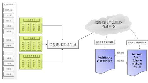 消息中心是政府移動(dòng)互聯(lián)網(wǎng)服務(wù)的一種創(chuàng)新應(yīng)用。消息中心的建立讓政府服務(wù)從過(guò)去公布在網(wǎng)站上等待用戶訪問(wèn),變成了一種主動(dòng)的服務(wù)模式。