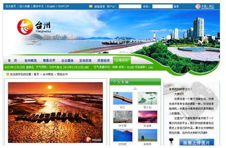 2012年,“中國·臺州”門戶網(wǎng)站又憑借《圖說臺州》欄目獲得了品牌欄目獎,該欄目匯聚了一批來自不同崗位,不同地域的攝影愛好者,他們用極其敏銳的視角捕捉身邊的千姿百態(tài),記錄臺州的人文地貌和歷史景觀,述說臺州滄桑巨變,表達(dá)內(nèi)心對幸福生活和真善美的追求,用鏡頭展示了“成長中的臺州,鏡頭下的美學(xué)”,讓更多的人了解臺州、喜愛臺州。