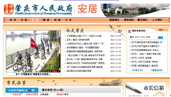 肇慶市人民政府門戶網(wǎng)站自2011年9月改版以來,一直緊密圍繞“宣傳型政府、透明型政府、效能型政府和民主型政府”的政府網(wǎng)站定位,從服務(wù)功能、服務(wù)對象兩個維度進行設(shè)計,設(shè)有簡體中文、繁體中文、英文、手機、純文字和無障礙等版本。中文版設(shè)置了“硯都肇慶”、“聚焦肇慶”、“服務(wù)肇慶”和“人文肇慶”四大主頻道,“安居”、“樂業(yè)”、“暢游”、“富商”和“興農(nóng)”五大主題頻道,以豐富的內(nèi)容、人性化的服務(wù)和強大的功能為用戶提供服務(wù),努力把市政府門戶網(wǎng)站打造成為網(wǎng)上政務(wù)公開的窗口、便民服務(wù)的平臺、聯(lián)系群眾的紐帶、電子政務(wù)的載體。