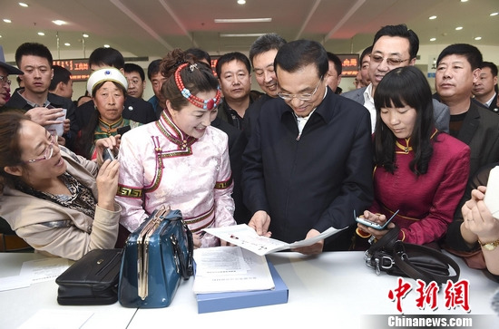 李克強(qiáng)總理近日到赤峰一政務(wù)服務(wù)中心考察