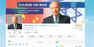 “我在北京看到了美麗的春天,這是鮮花盛開的季節(jié)。”4月10日,來訪的以色列總統(tǒng)西蒙·佩雷斯在微博上這樣寫道,“回到以色列之后,我將繼續(xù)我的新浪微博,跟親愛的中國網(wǎng)友們交流。”