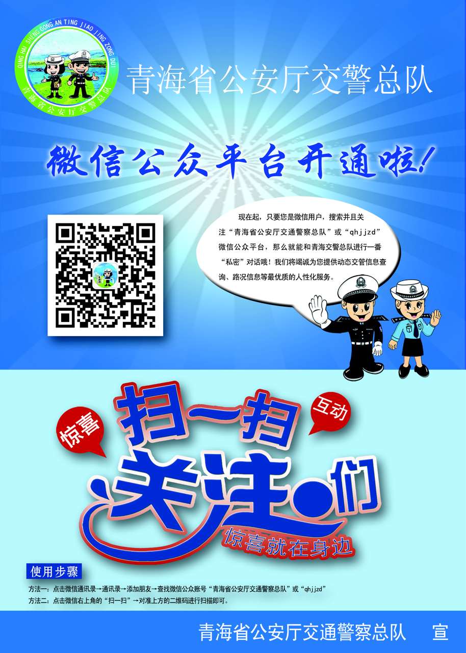 點擊微信-添加朋友-查找微信公眾賬號-“青海省公安廳交通警察總隊”或“qhjjzd”