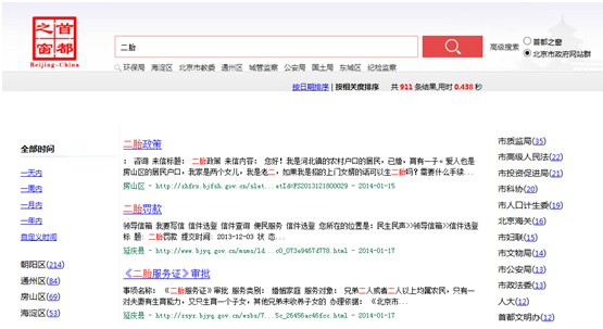 家住回龍觀的IT白領(lǐng)劉先生,最近正在為生二孩的計(jì)劃加緊準(zhǔn)備,但是到了申請(qǐng)二孩指標(biāo)的時(shí)候,為了申請(qǐng)各種表格手續(xù)的事犯了難。他不知道該去哪去申請(qǐng)手續(xù),該填那些表格。不過(guò),這種百姓的辦事難題,在北京市政府“首都之窗網(wǎng)站群云搜索門(mén)戶”(http://so.beijing.gov.cn)開(kāi)通之后,這些難題便迎刃而解了。
