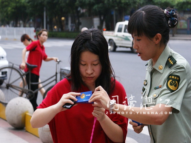 邊檢官兵向過往群眾發(fā)放政務(wù)微信宣傳小卡片